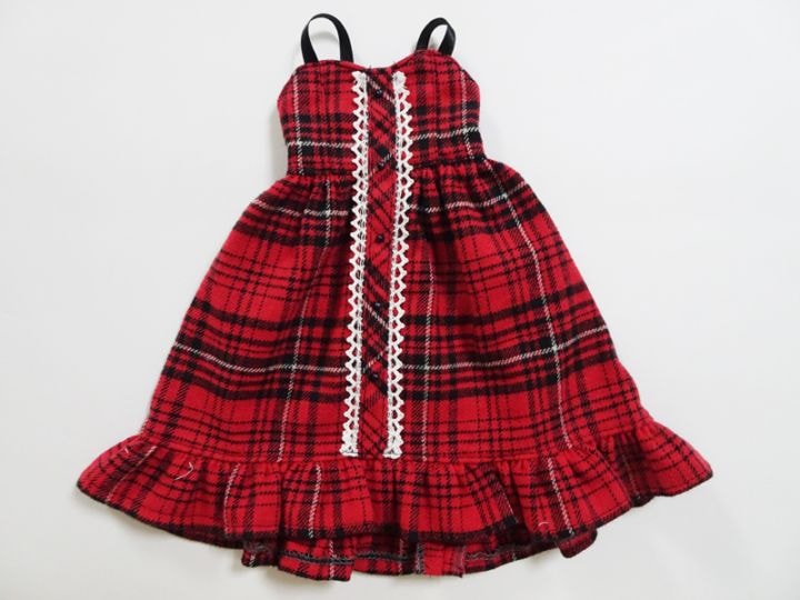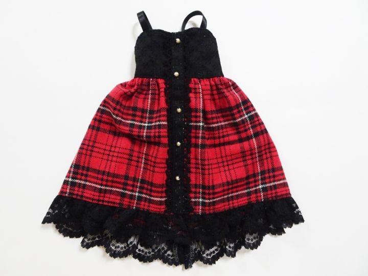 【単品】オビツ50(S.M)/DDP/アゾン45/MDD(L) フロントボタンジャンバースカート(赤チェック2021)