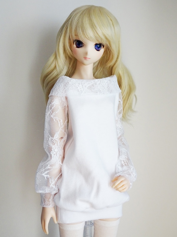 オビツ50/AZO2(G) 襟ドロップショルダーワンピース(白&レース)