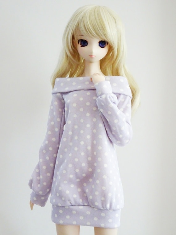 オビツ50/AZO2(G) 襟ドロップショルダーワンピース(ラベンダードット)