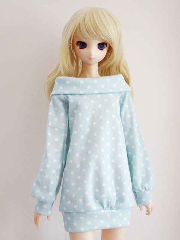 オビツ50/AZO2(G) 襟ドロップショルダーワンピース(水色ドット)