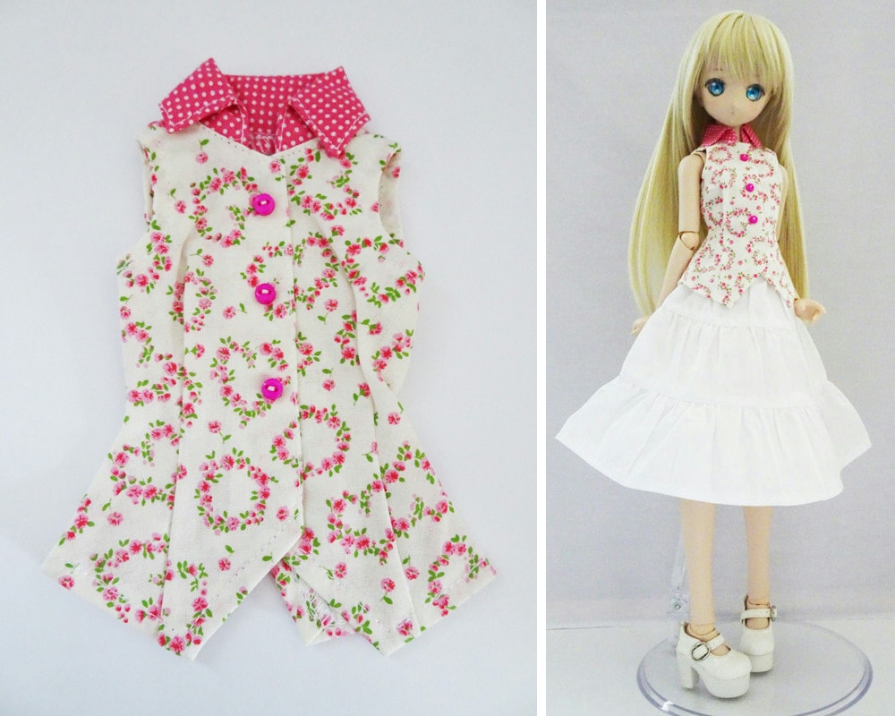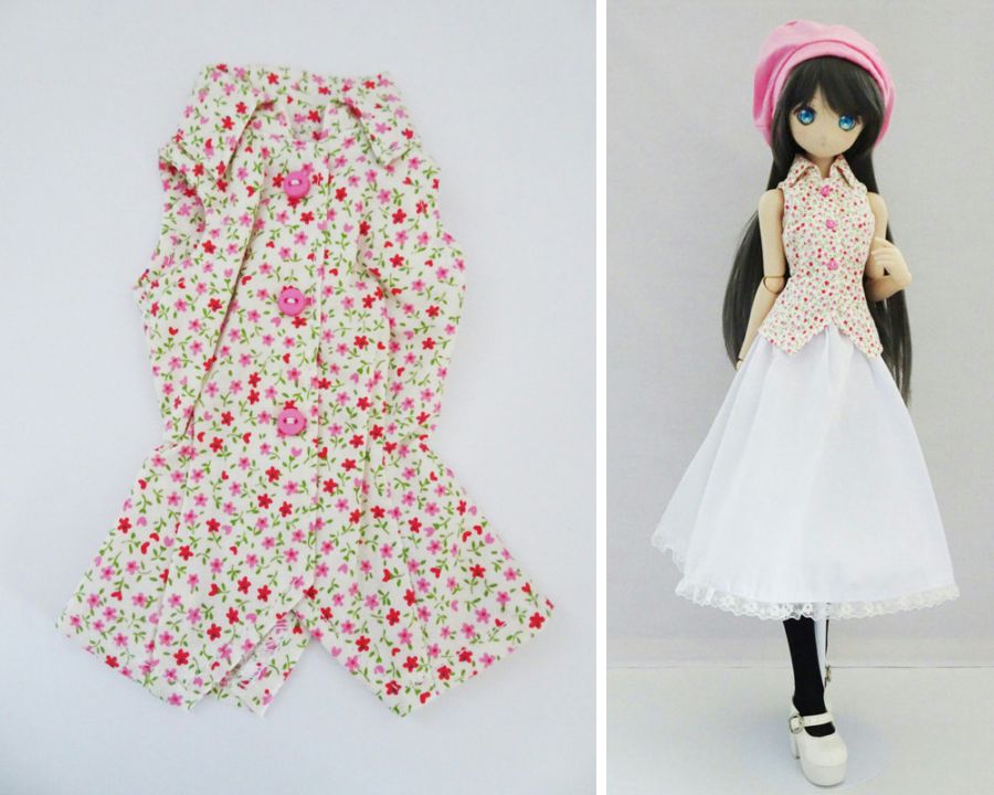 【単品】オビツ50/DDP/アゾン45 ノースリーブ燕尾ブラウス(小花)