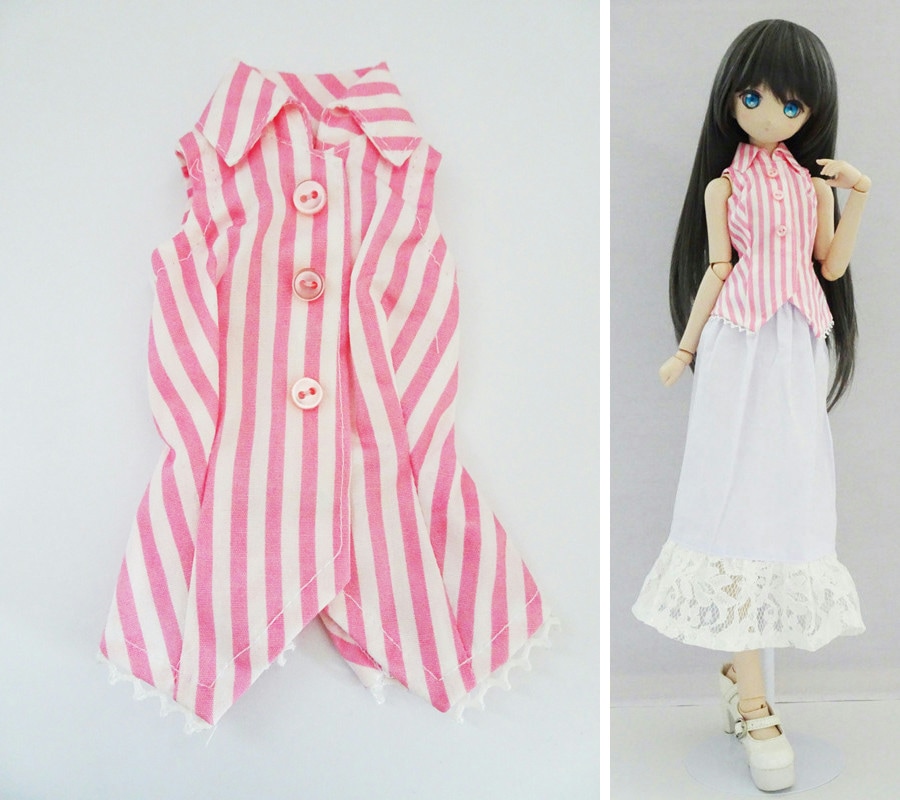 【単品】オビツ50/DDP/アゾン45 ノースリーブ燕尾ブラウス(ピンクストライプ)