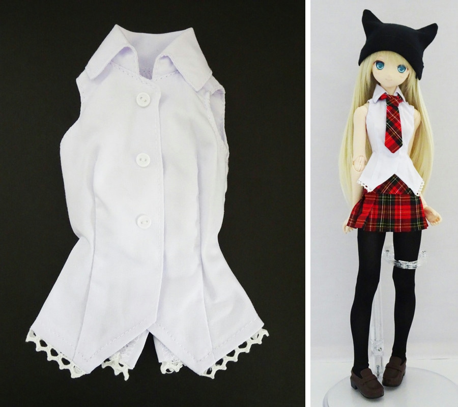 【単品】オビツ50/DDP/アゾン45 ノースリーブ燕尾ブラウス(白/レースあり)