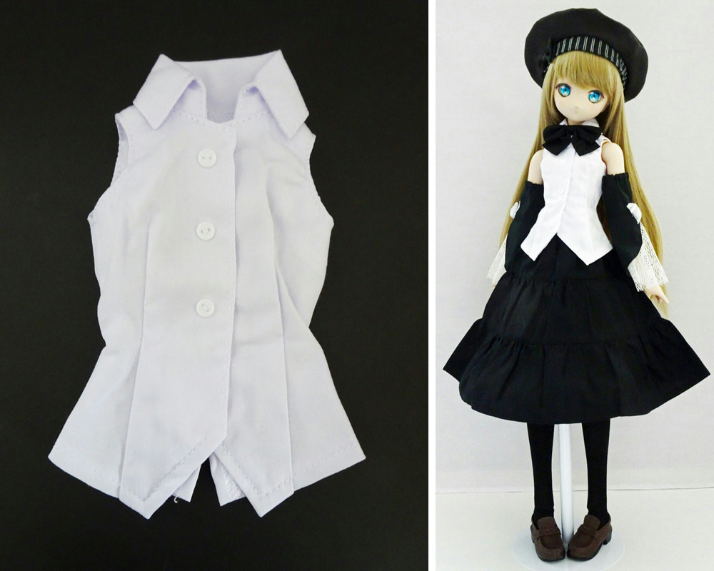 【単品】オビツ50/DDP/アゾン45 ノースリーブ燕尾ブラウス(白/レースなし)
