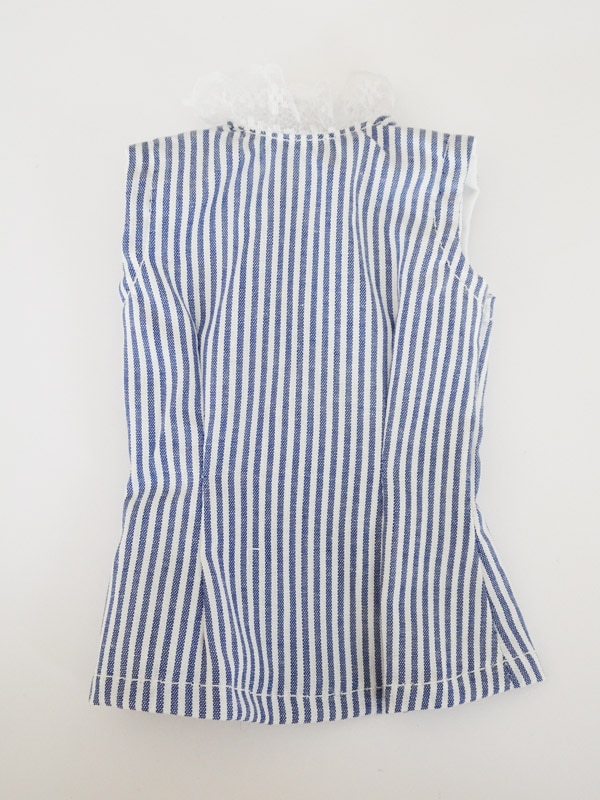 【単品】40cm~50cmフリーサイズ フリルカラーブラウス/ノースリーブ(紺白ストライプ)
