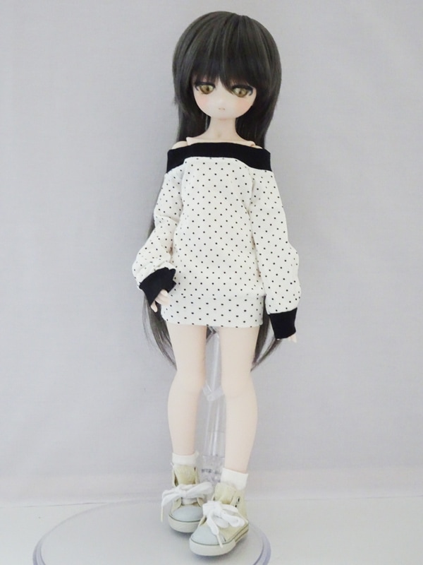 MDD(もちあし)/アゾン45/DDP オフショルダートレーナーワンピ(ロング/水色ボーダー)