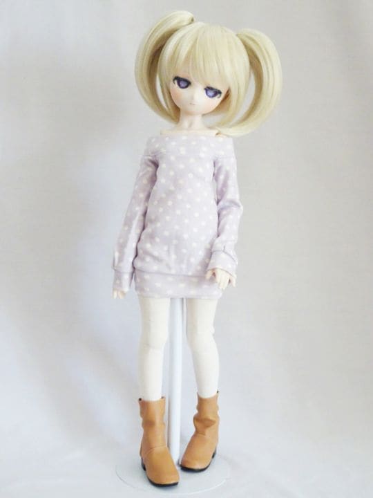 MDD(もちあし)/アゾン45/DDP オフショルダートレーナーワンピ(ロング/水色ボーダー)