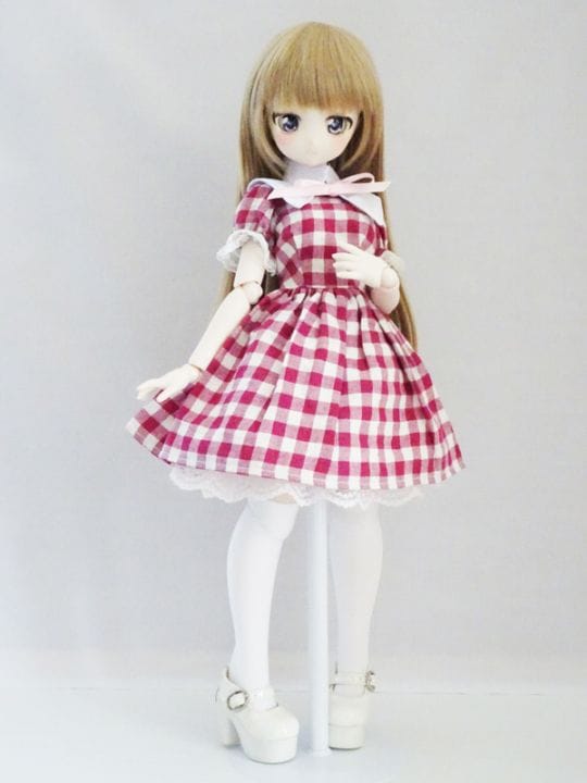 MDDもちあし2.0(L)/アゾン45/DDP/オビツ50 つけ襟ワンピース(ピンクチェック)