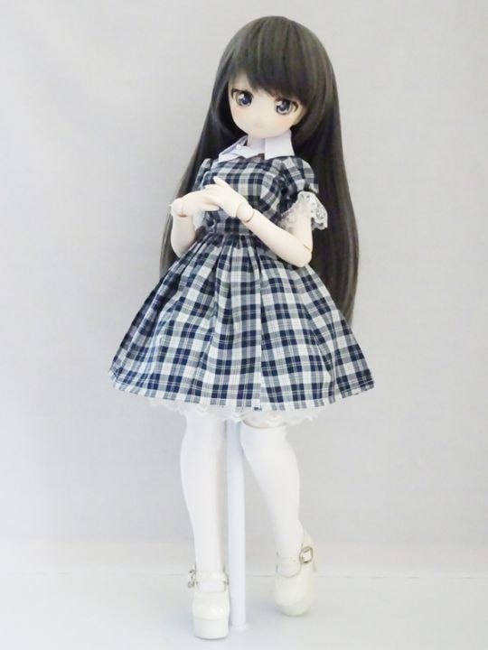 MDDもちあし2.0(L)/アゾン45/DDP/オビツ50 つけ襟ワンピース(紺チェック)