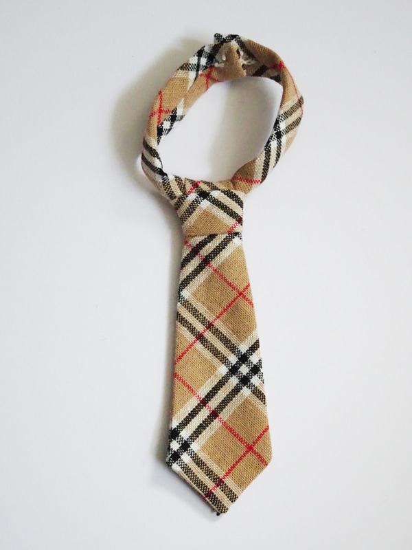 【単品】40cm~60cmフリーサイズ シャツブラウス用大きめリボンネクタイ(ベージュチェック)