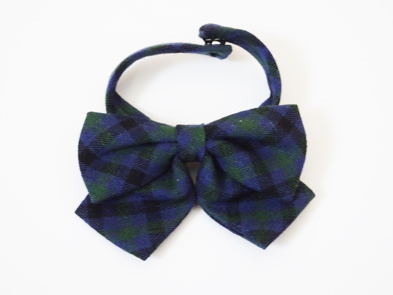 【単品】40cm~60cmフリーサイズ シャツブラウス用大きめリボンネクタイ(青チェック)