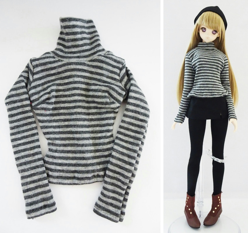 【単品】DDS/DD/DDdy/SD/スマートドール(S) タートルネックTシャツ(黒グレーボーダー)