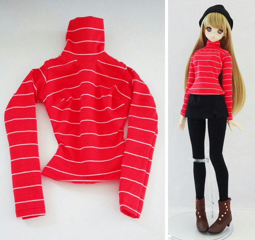 【単品】DDS/DD/スマートドール(S)/オビツ50GGR/AZO2(G) タートルネックTシャツ(赤白ボーダー)