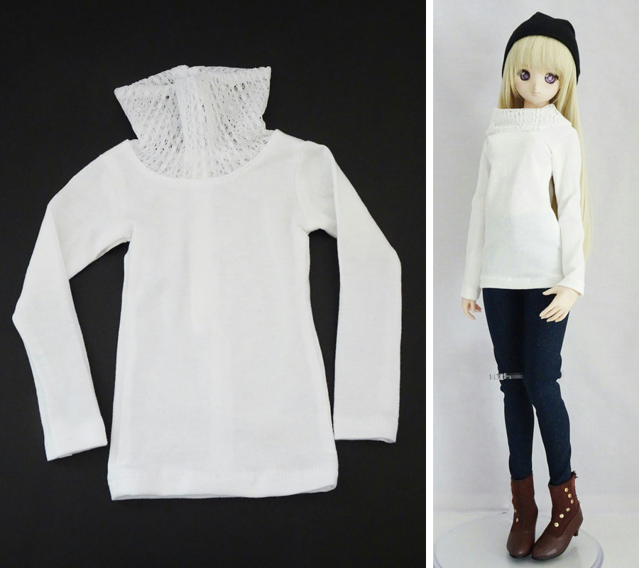 【単品】DDS/DD/DDdy/SD/スマートドール(S) ビッグタートルTシャツ(白/白レース襟)