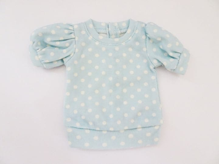 【単品】オビツ50/AZO2/DDP/アゾン45 パフスリーブTシャツ(水色ドット)