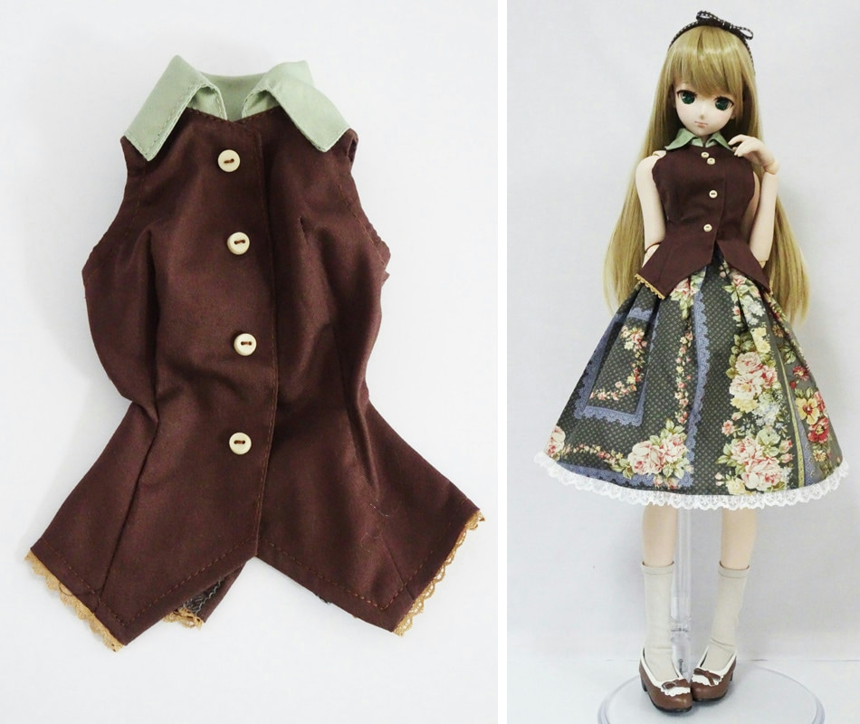 【単品】DD(L)/DDdy ノースリーブ燕尾ブラウス(茶/抹茶襟)
