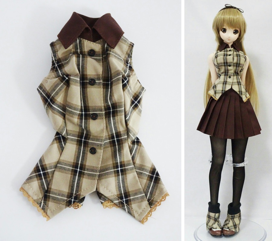 【単品】DD(L) ノースリーブ燕尾ブラウス(ベージュ茶黒チェック)