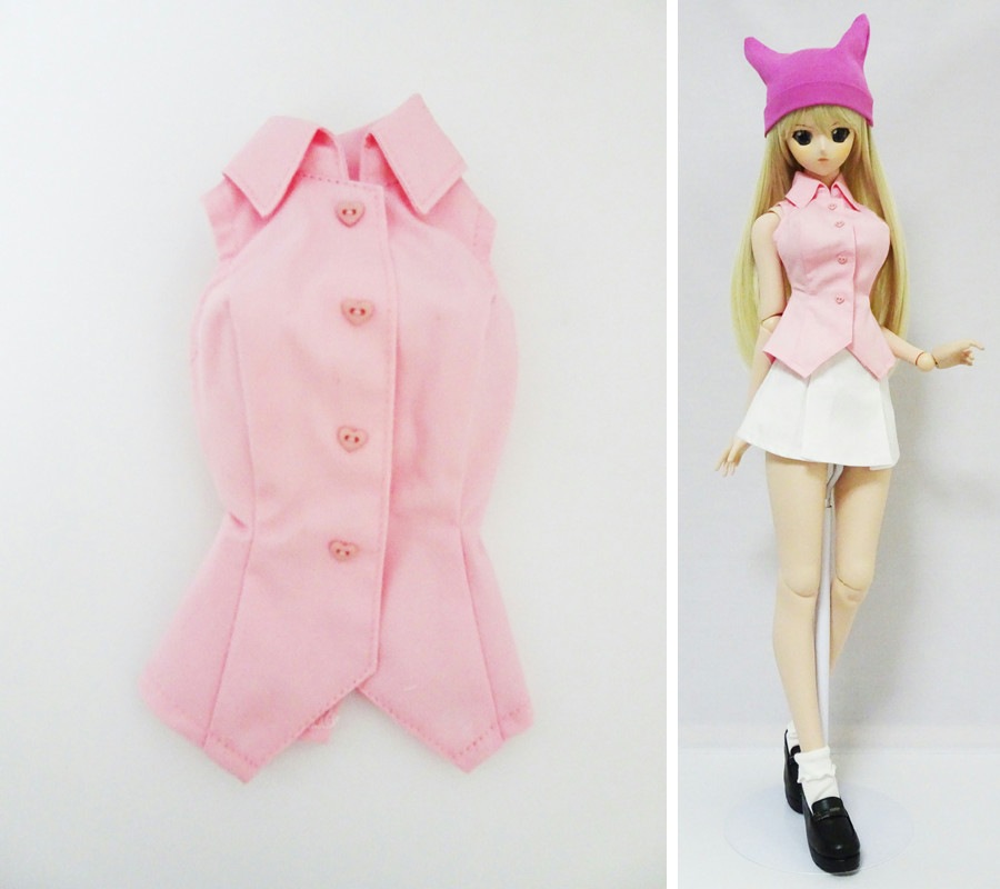 【単品】DD(M.L)/DDdy/スマートドール(S) ミニブラウス/ノースリーブ(ピンク/白襟)