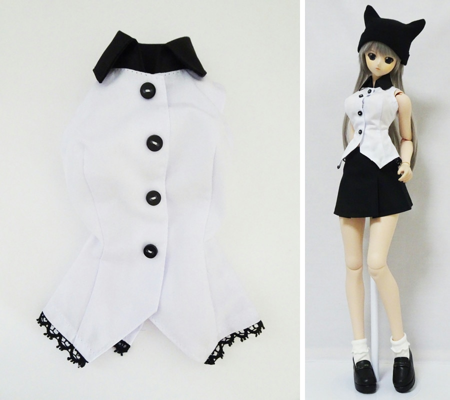 【単品】DD(M.L)/スマートドール(S)/オビツ50GGR ミニブラウス/ノースリーブ(白/黒襟)
