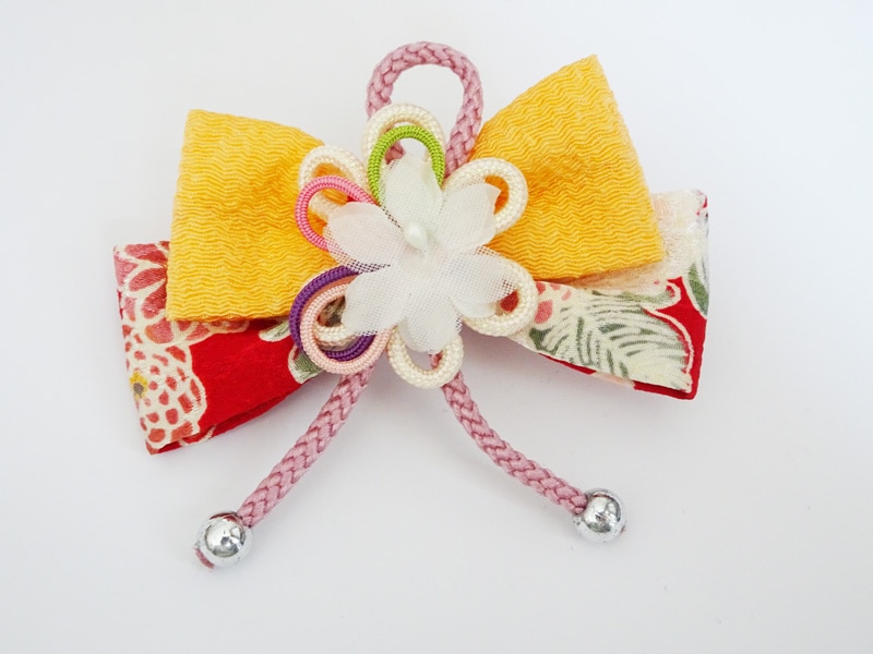 【単品】7.5~9インチヘッド ちりめんの大きなリボンの髪飾り(白)
