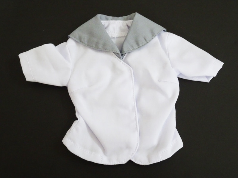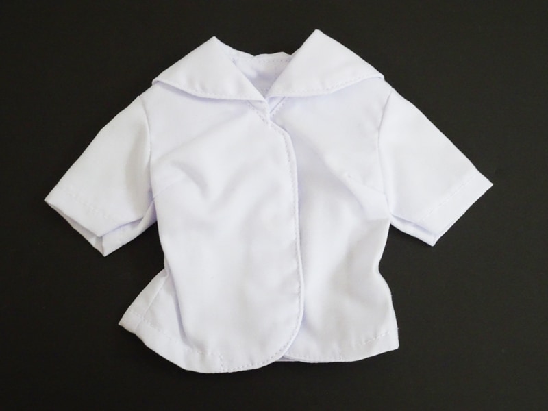 【単品/制服コーデ】オビツ50/DDP/アゾン45 半袖制服ブラウス/胸あて有/2本ライン(白/黒襟/白ライン)