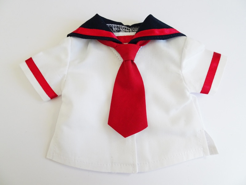 【単品/制服コーデ】オビツ50/DDP/アゾン45 半袖制服ブラウス/胸あて有/2本ライン(白/黒襟/赤ライン)