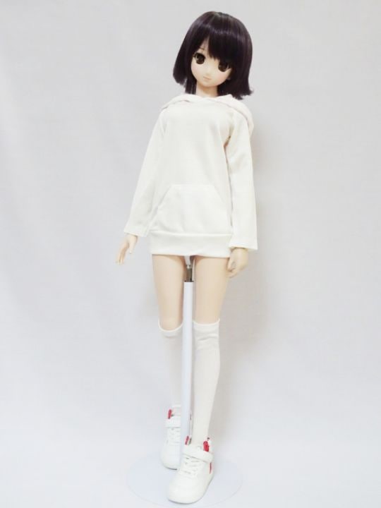 DDS/DD/DDdy/SD/スマートドール/オビツ50/AZO2(G) パーカーワンピース/長袖(白/フード裏:ピンク白ボーダー)