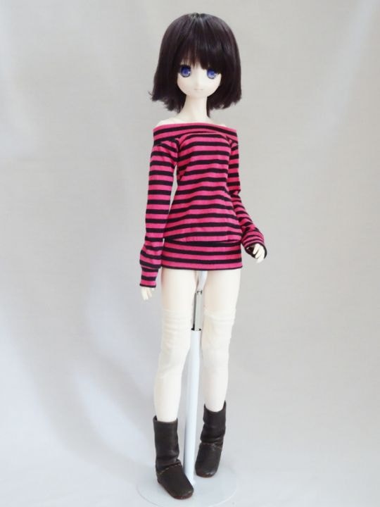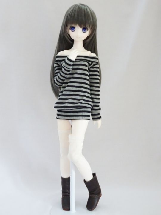 MDD(L/もちあし)/アゾン45/DDP/オビツ50 レディタイトワンピース/七分袖/ミニ丈(黒グレーストライプ)