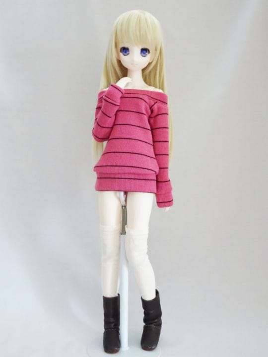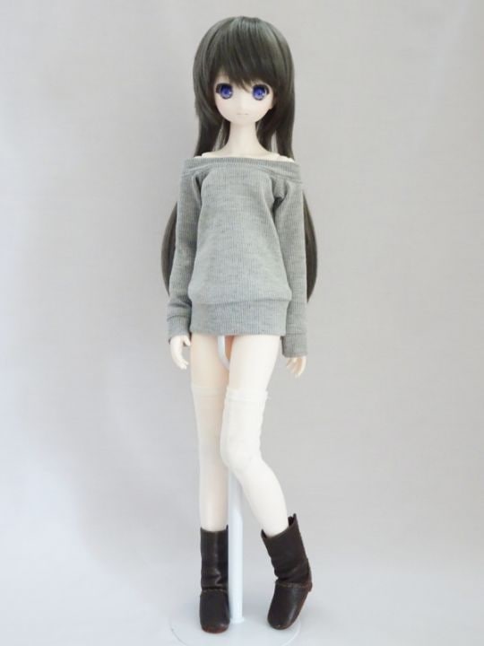 オビツ48/オビツ50 オフショルダートレーナーワンピ(ロング/白ランダムリブ)