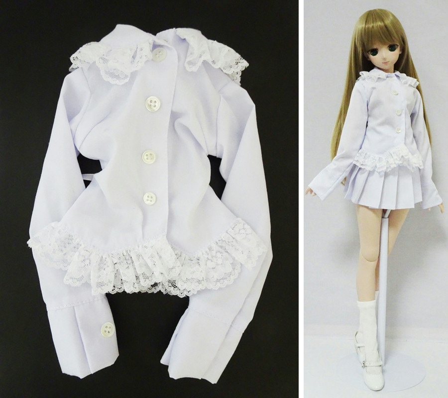 【単品】DDS/DD/スマートドール(S) キュートフリルブラウス(白/白レース)