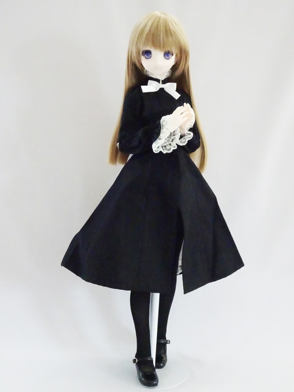 オビツ50/オビツ48 フロントスリットフレアワンピース/長袖(黒)