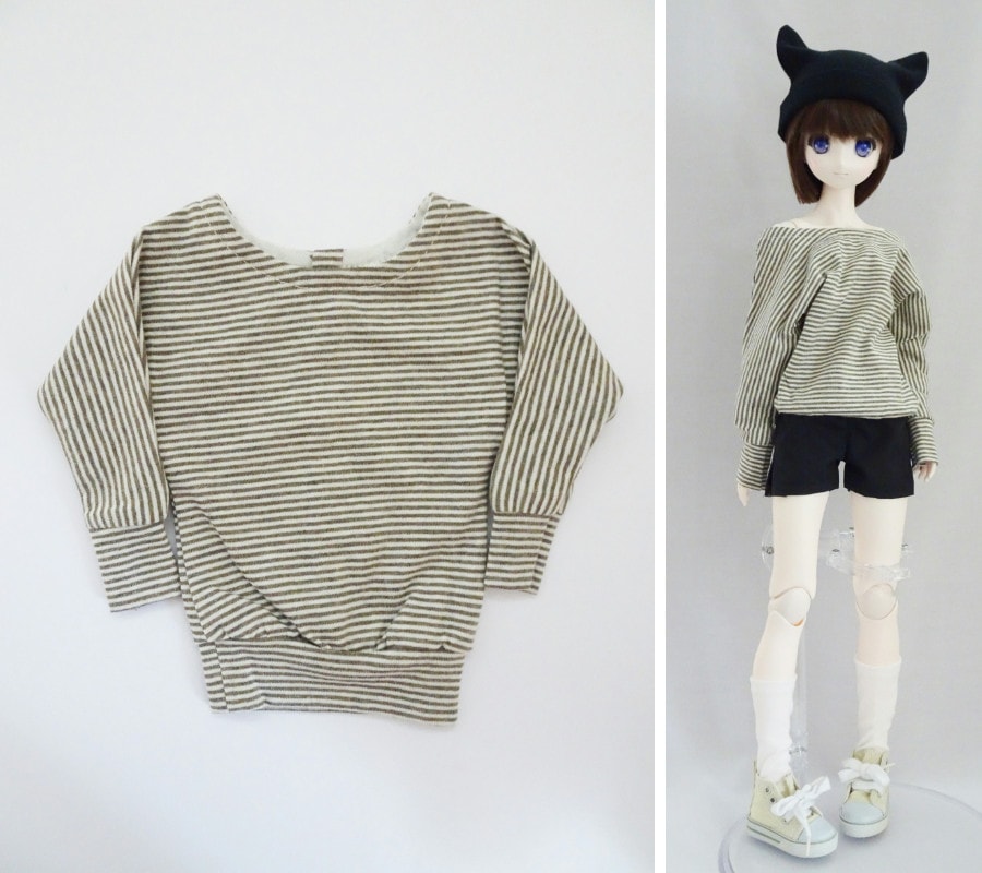 【単品】オビツ50/AZO2(G胸) ドルマンスリーブトレーナー(白グレーピコボーダー)