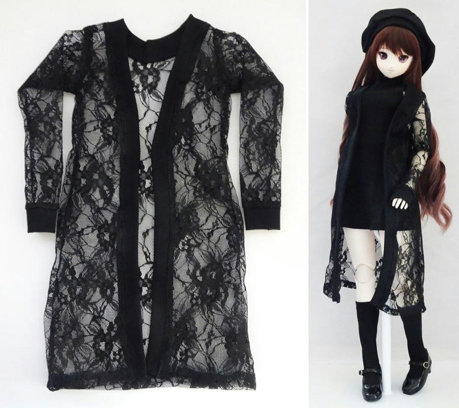 【単品】DDS/DD/DDdy/SD/スマートドール/オビツ50/AZO2/オビツ50GGR コーディガン/ミディ(黒レース)