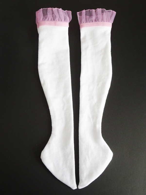 【単品】DDS/DD/DDdy レースニーソックス(白/ピンクオーガンジーレース)