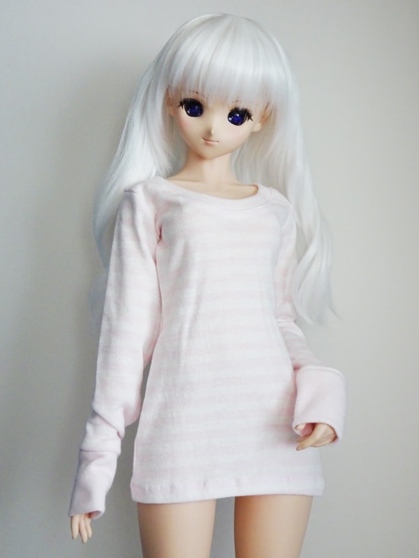 【単品】DD/DDdy/スマートドール UネックロングTシャツ(パステルピンク白ボーダー)