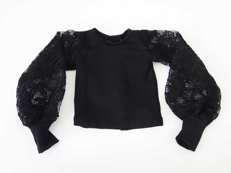 【単品】60cmフリーサイズ ボリュームスリーブTシャツシアー(黒/レース袖)