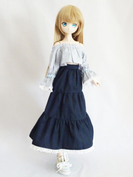 オビツ50/DDP オフショルブラウス&ロングスカートセット(ストライプ/紺SK)