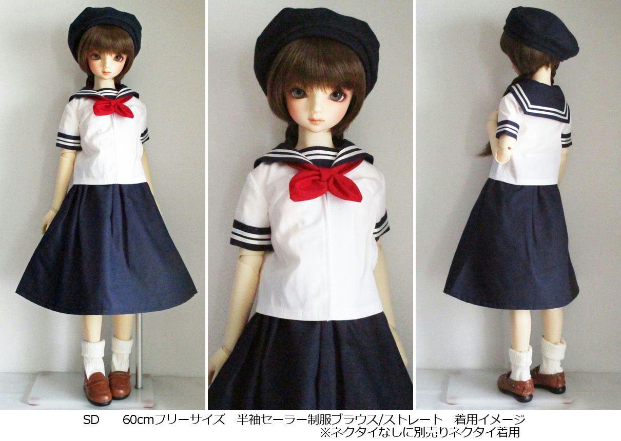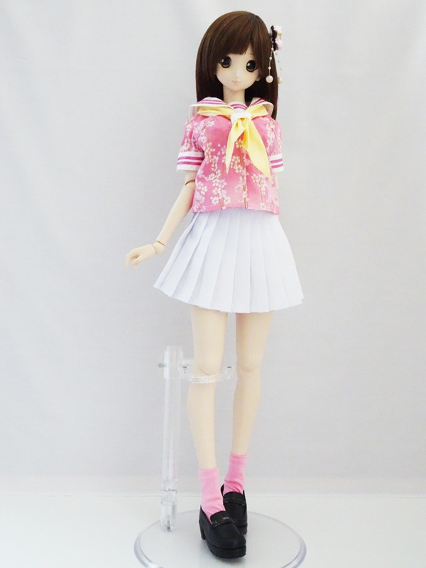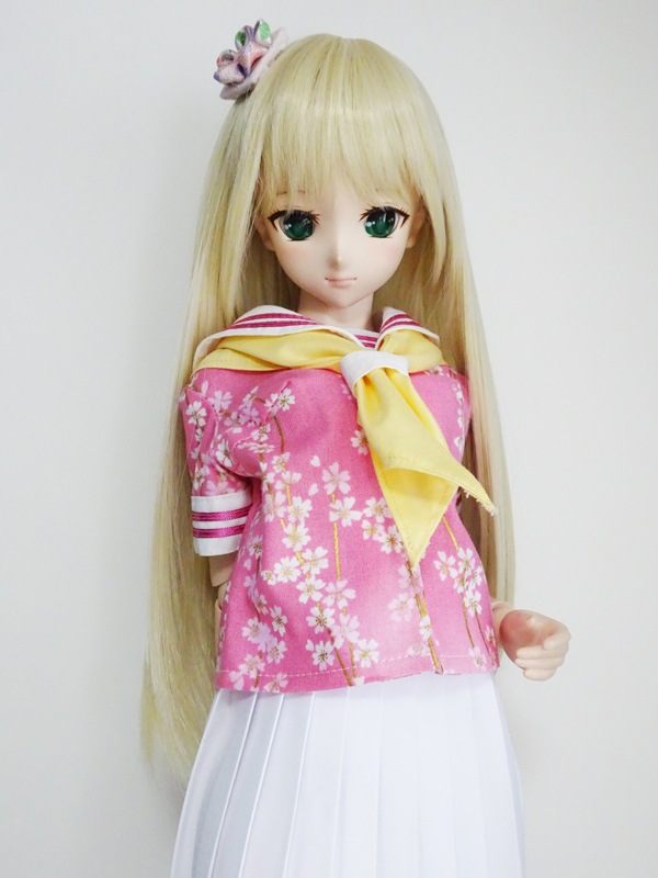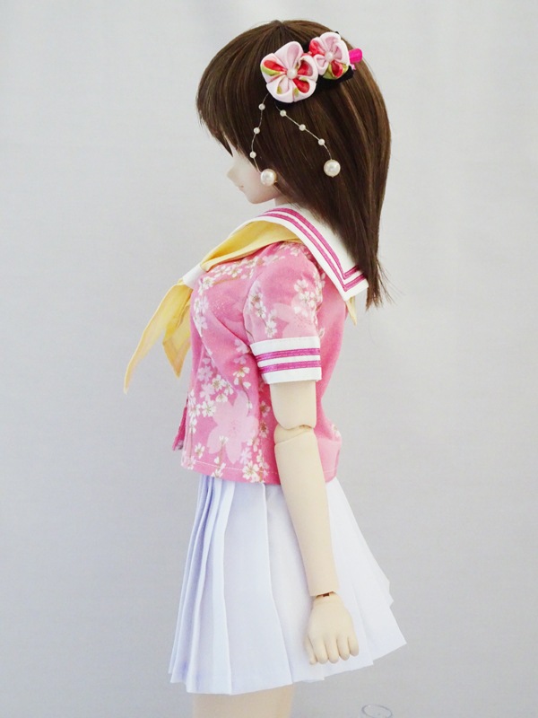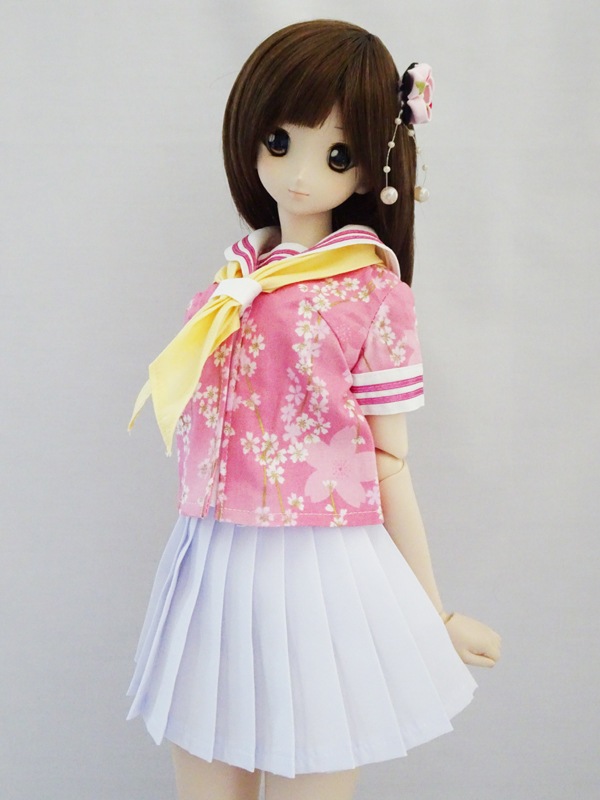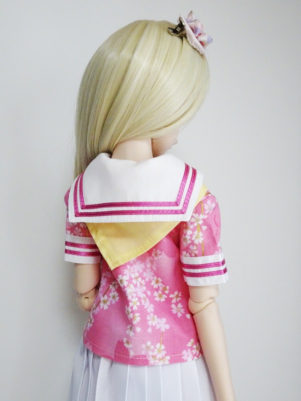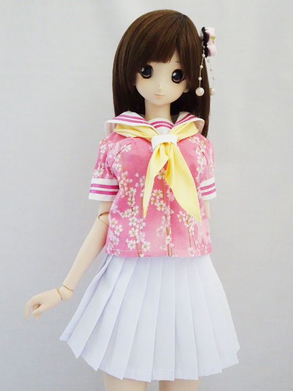【単品/制服コーデ】DDS/DD/DDdy/SD/スマートドール 半袖セーラー制服ブラウス/ストレート/三角ネクタイ付(和柄桜)