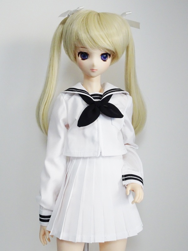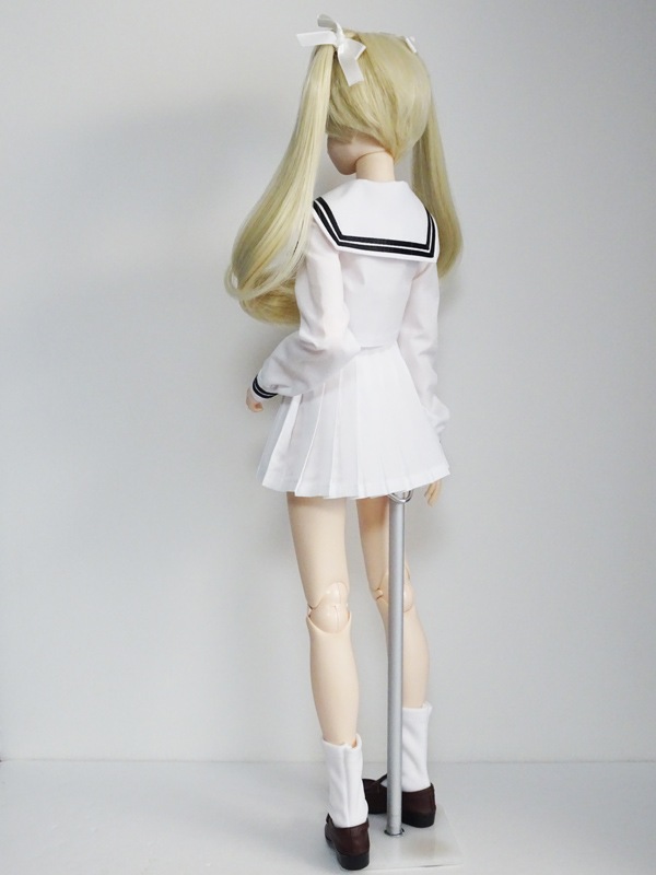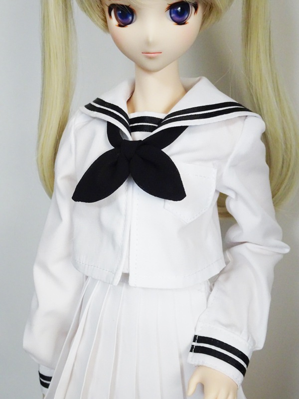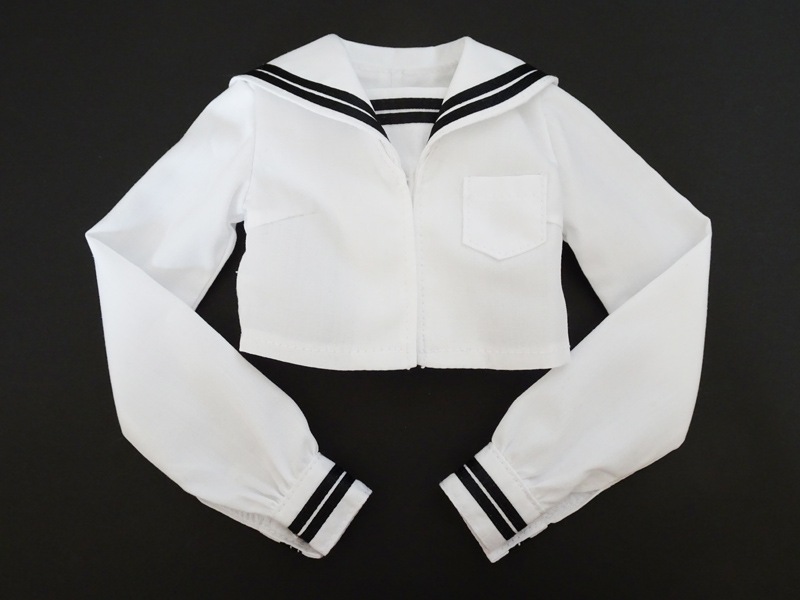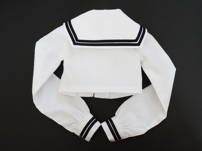【単品/制服コーデ】オビツ50 長袖制服ブラウス/胸あて有(白/白襟/黒ライン)
