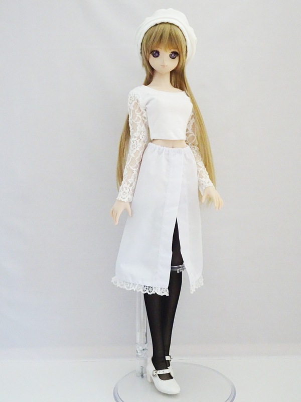 【単品】DDS(M)/DD(M)/スマートドール(S)/オビツ50GGR/AZO2(G) ミニTシャツ/長袖(白/レース)