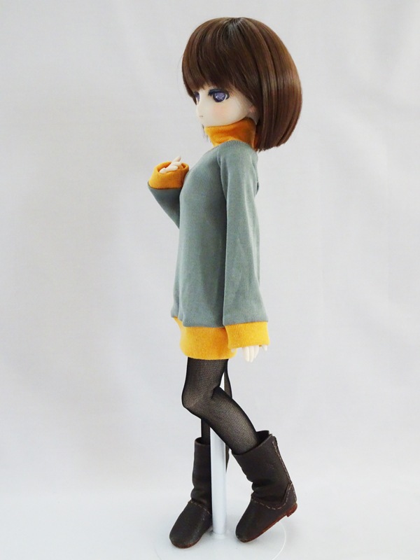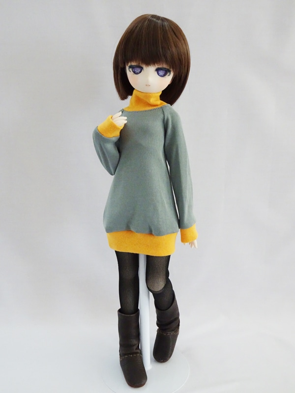 MDD(もちあし)/アゾン45/DDP タートルネックワンピース(オリーブ×マリーゴールド)
