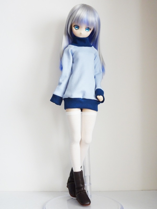 MDD(もちあし)/アゾン45/DDP タートルネックワンピース(水色×紺)