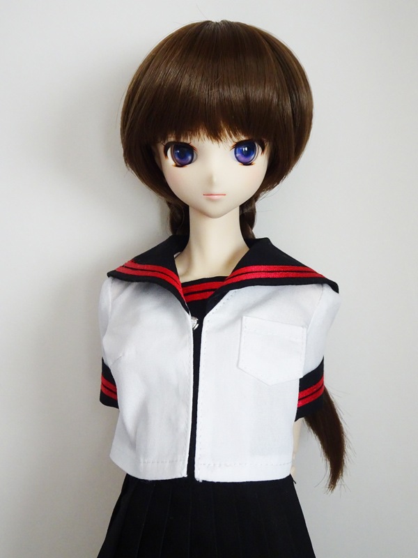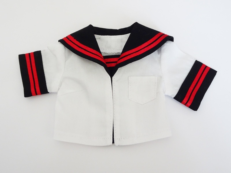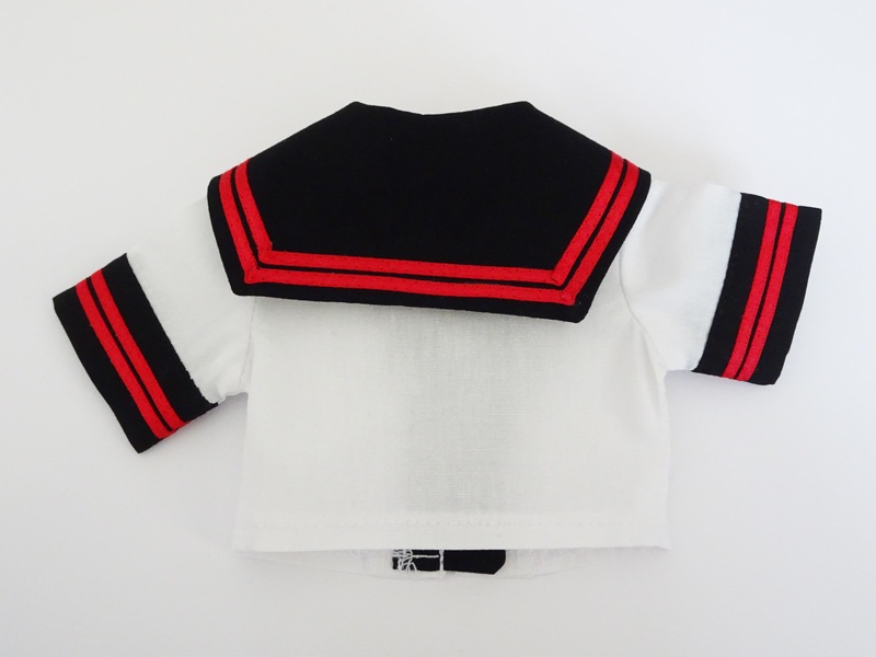 【単品/制服コーデ】オビツ50/DDP/アゾン45 半袖制服ブラウス/胸あて有/2本ライン(白/黒襟/赤ライン)についてつぶやく