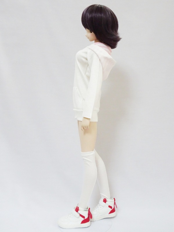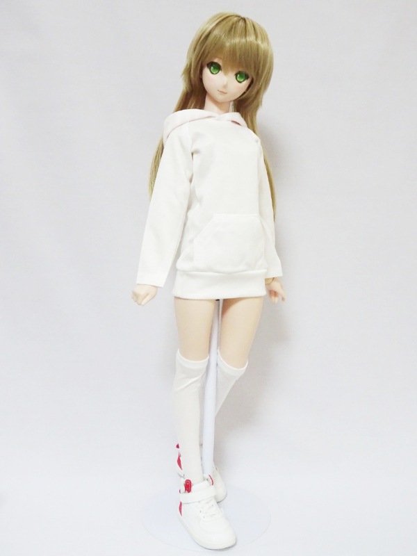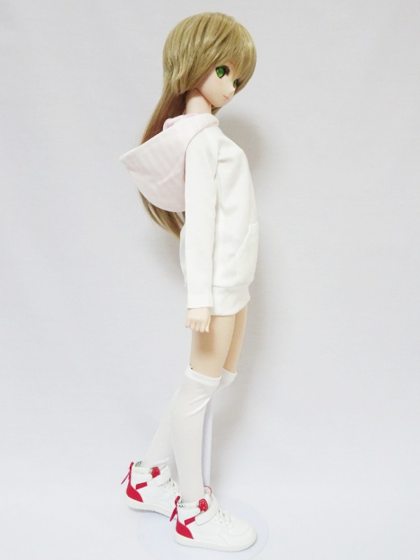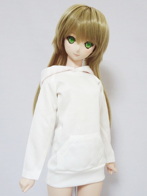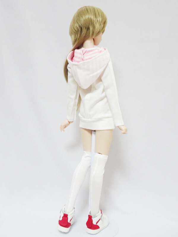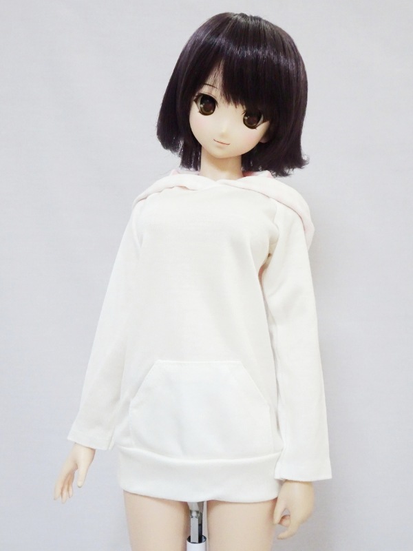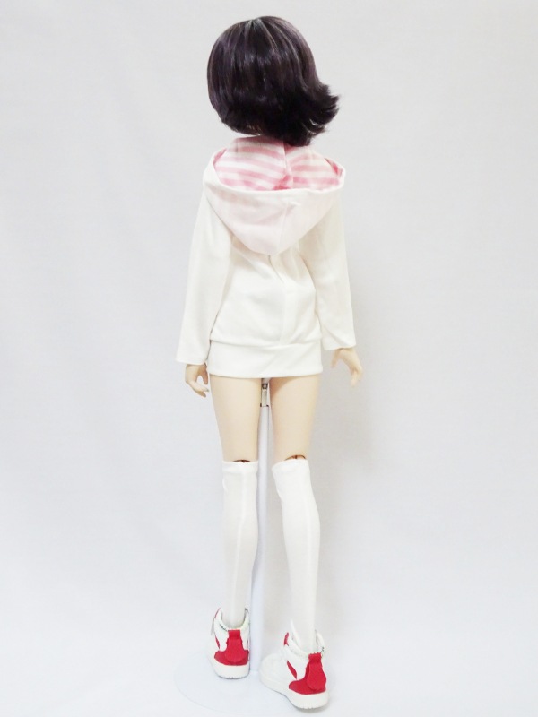 DDS/DD/DDdy/SD/スマートドール/オビツ50/AZO2(G) パーカーワンピース/長袖(白/フード裏:ピンク白ボーダー)