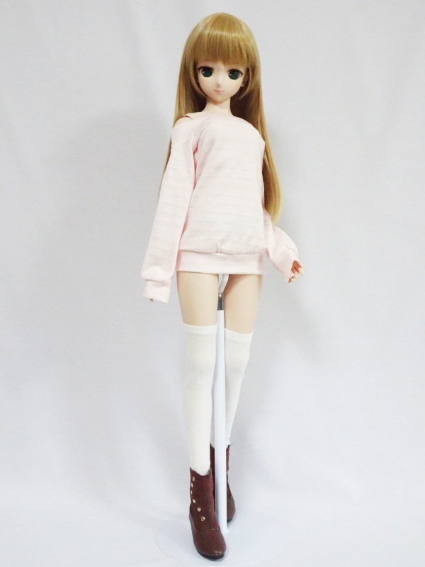 DDS/DD/スマートドール オフショルダートレーナーワンピ(ロング/ピンクボーダー)