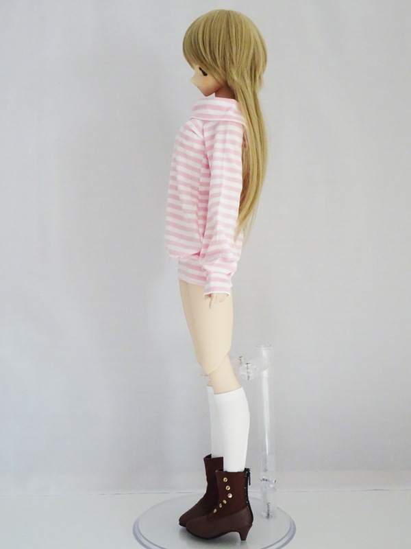DDS/DD/スマートドール 襟ドロップショルダーワンピース(ピンク白ボーダー)