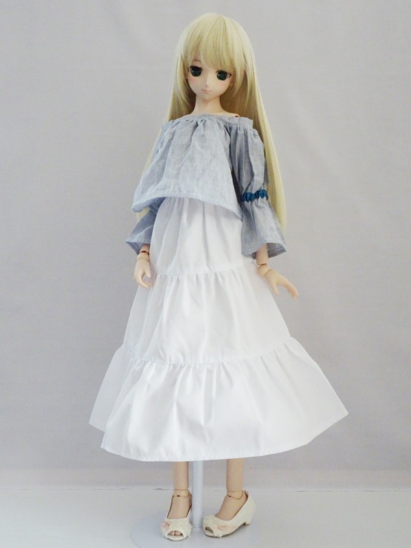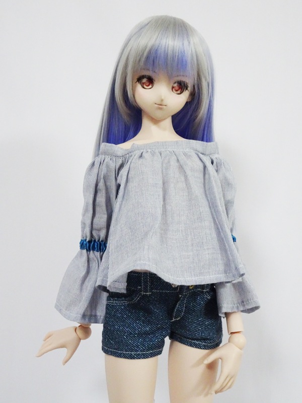 【単品】オビツ50/AZO2(G)/DDS(S.M)/DD(S.M) オフショルダーブラウス/長袖/通常丈(紺白ストライプ)