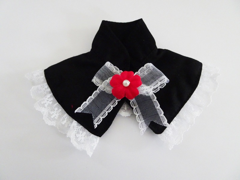 【単品】40~60cmフリーサイズ リボンつけ襟(黒/白リボン)