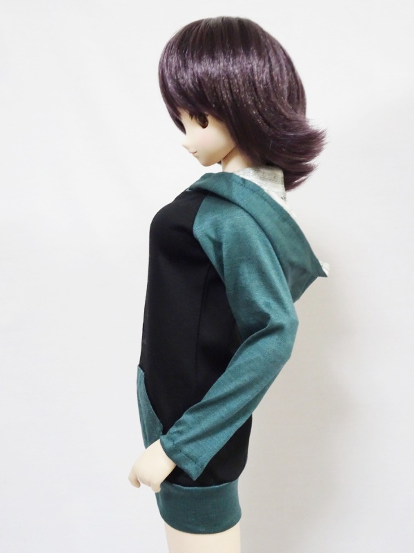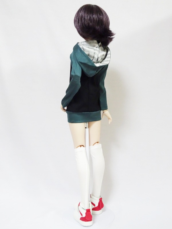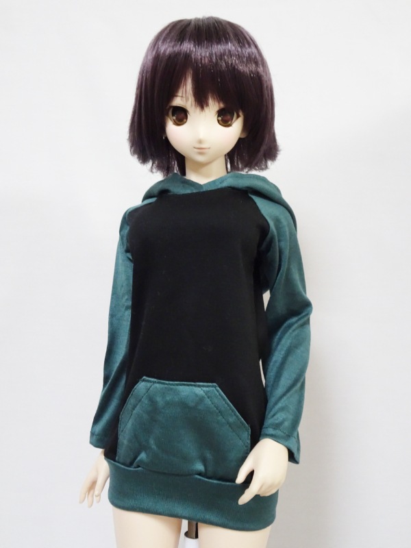 DDS/DD/DDdy/SD/スマートドール/オビツ50/AZO2(G) パーカーワンピース/長袖(緑×黒)