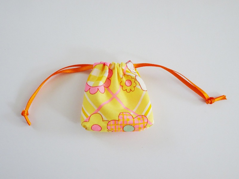 【単品】フリーサイズ 巾着(レトロ花柄/黄色)